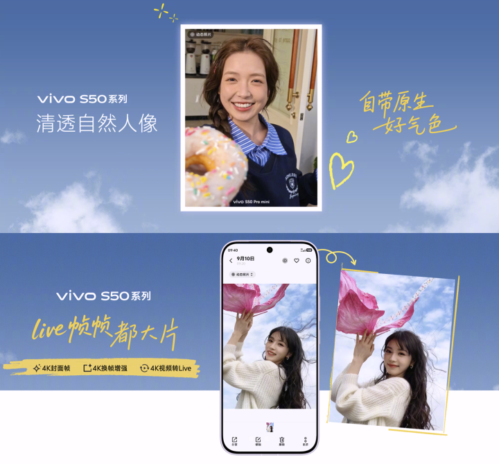 指尖触碰快门的瞬间,vivo S50便开启了一场视觉魔法。新一代人像影像旗舰,将专业级的电影级运镜效果化繁为简,只需在屏幕上轻轻一点,背景即刻产生纵深变化的指引拍摄。S50支持双路 EIS 防抖,它在移动中拍摄的Live照片依然保持超高清画质。在人像模式下中融证券,即便是逆光环境,清透自然人像也能精准保留发丝边缘的细节,让每一张照片都充满电影质感。
